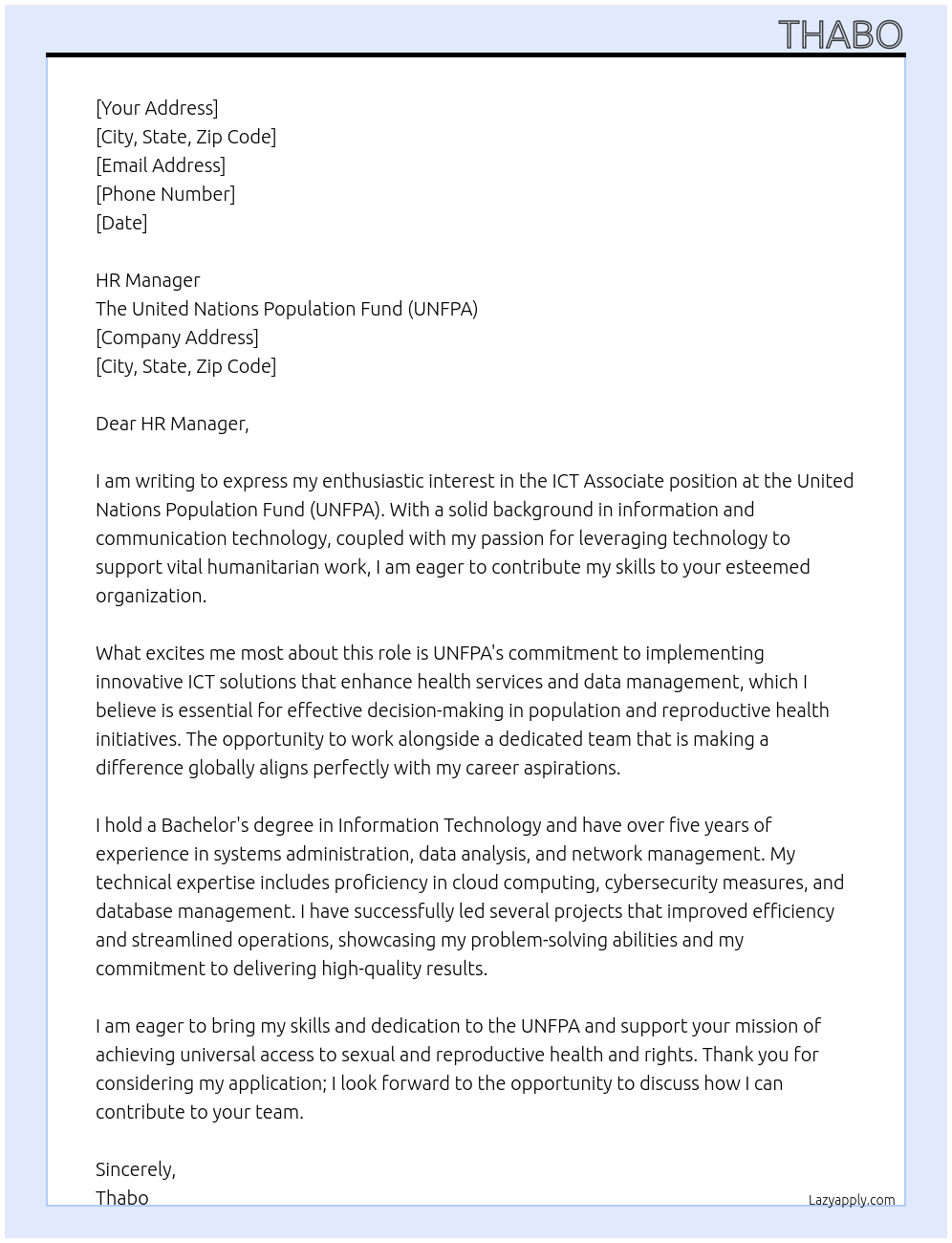 ICT Associate Cover Letter At The ๐จ๐ป๐ถ๐๐ฒ๐ฑ ๐ก๐ฎ๐๐ถ๐ผ๐ป๐ ๐ฃ๐ผ๐ฝ๐๐น๐ฎ๐๐ถ๐ผ๐ป ๐๐๐ป๐ฑ (๐จ๐ก๐๐ฃ๐)