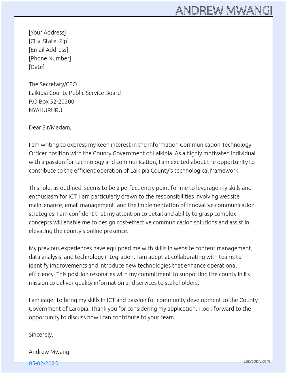 infomation communication technology officer Cover Letter At County Government of Laikipia