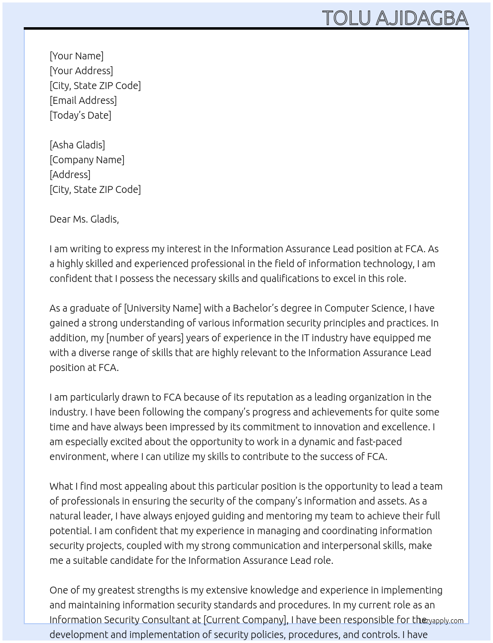 Information Assurance Lead Cover Letter Examples And Template
