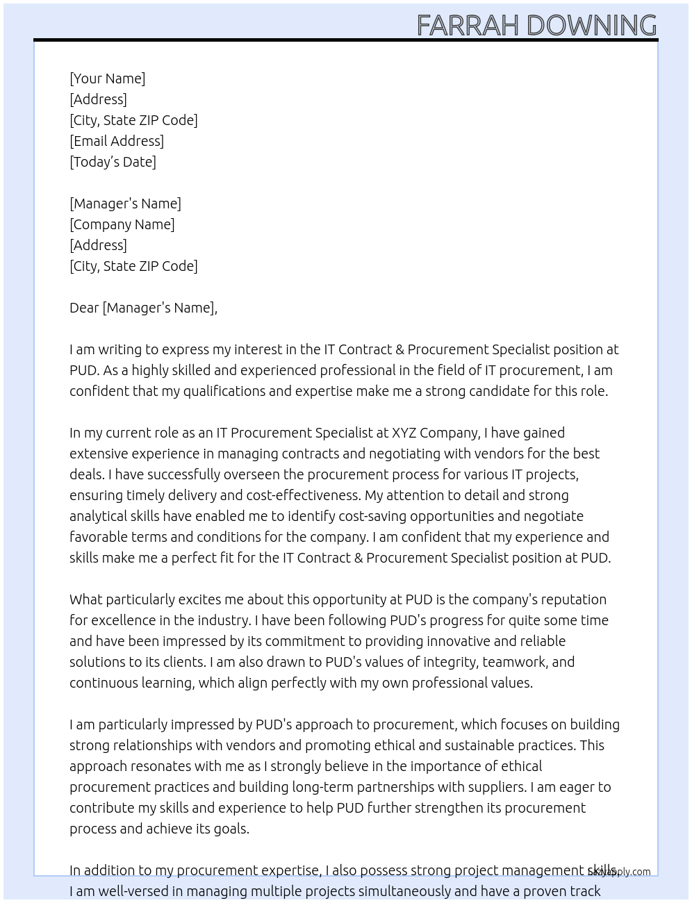 IT Contract & Procurement Specialist Cover Letter At PUD