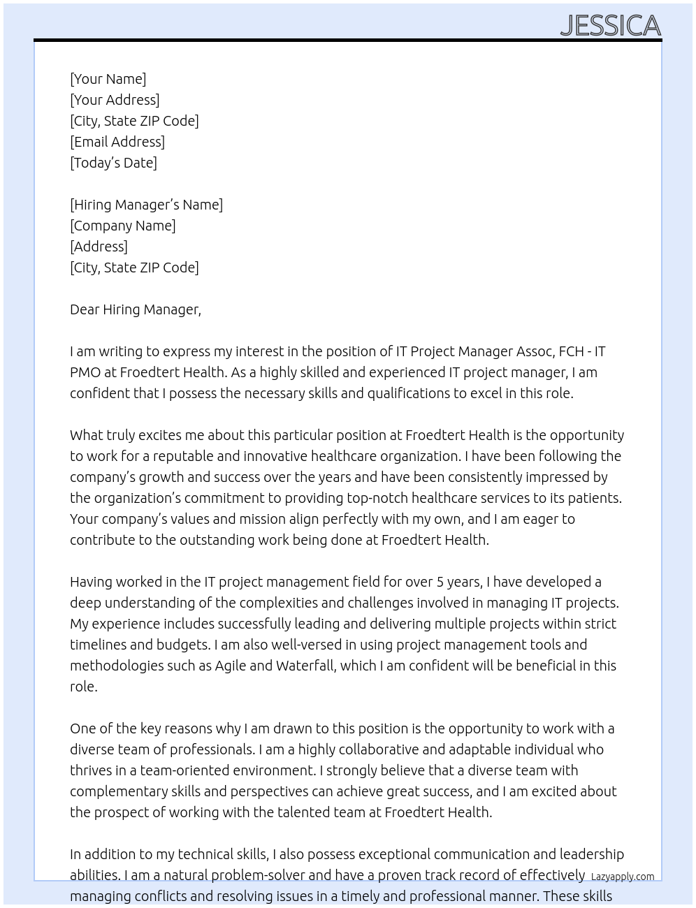 IT PROJECT MANAGER ASSOC, FCH - IT PMO Cover Letter At Froedtert Health