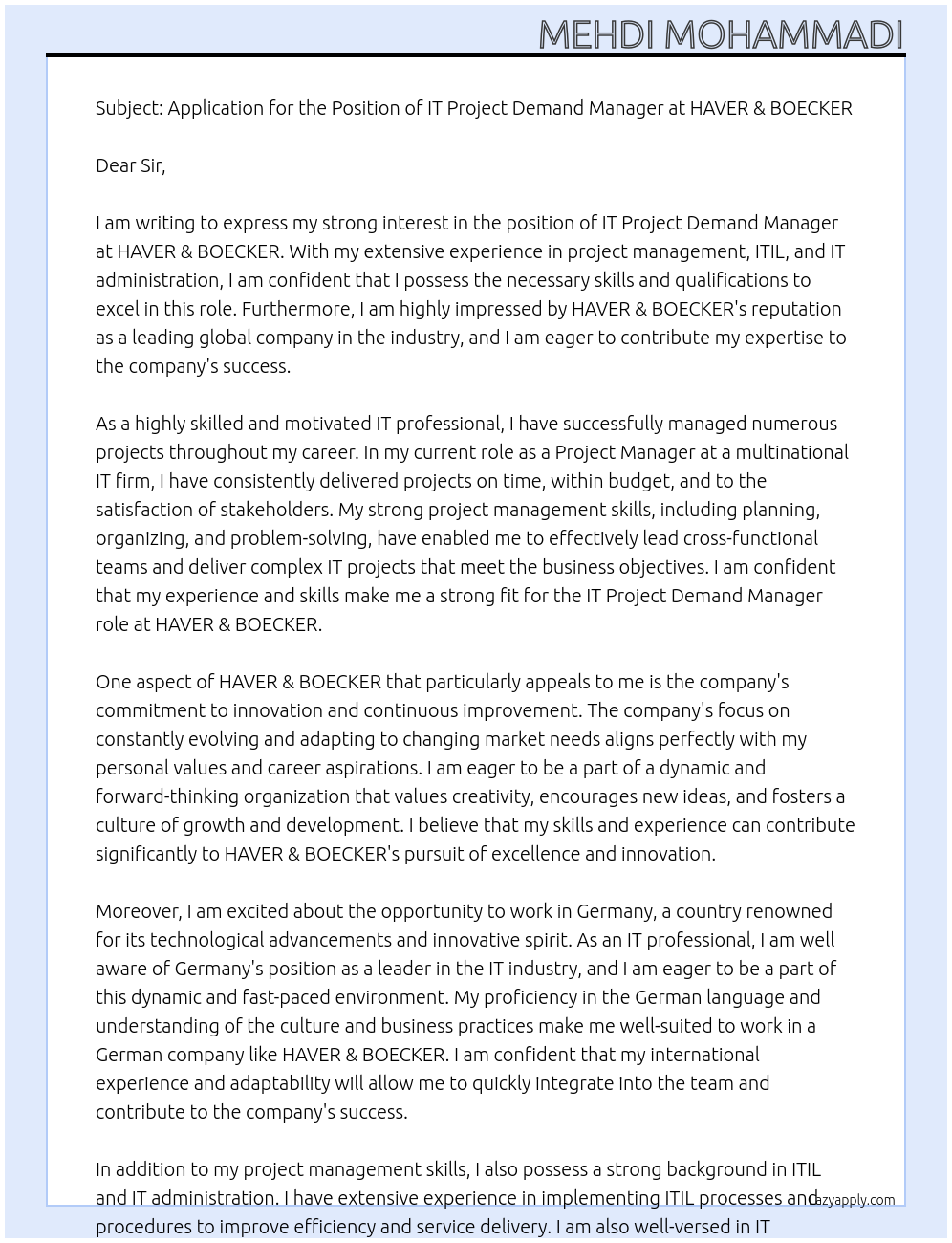 IT Projekt Demand Manager Cover Letter At HAVER & BOECKER