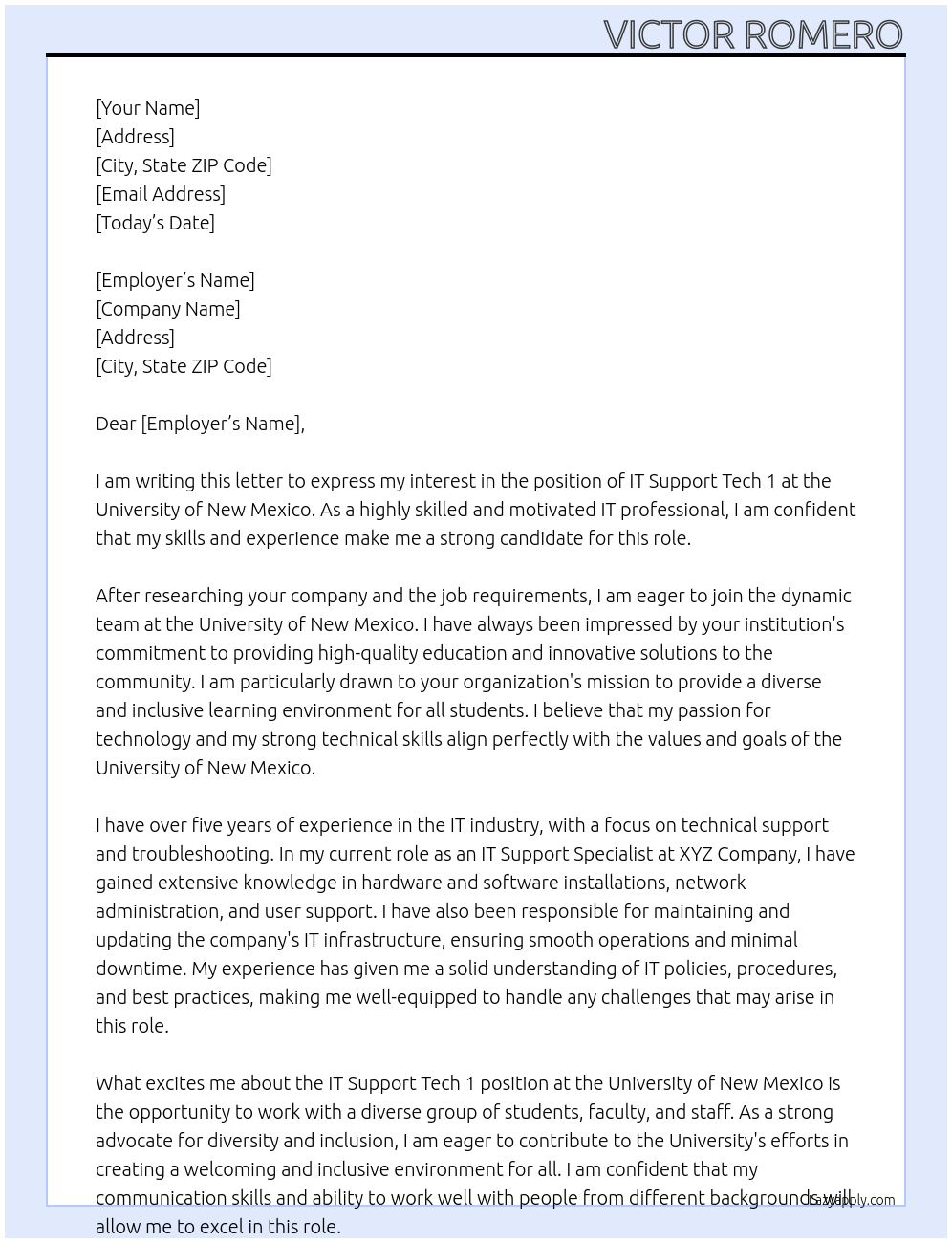 IT Support Tech 1 Cover Letter At University of New Mexico