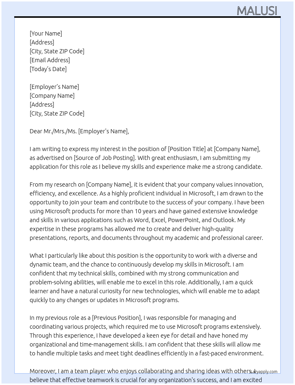 Proficient In Microsoft Cover Letter Examples And Template