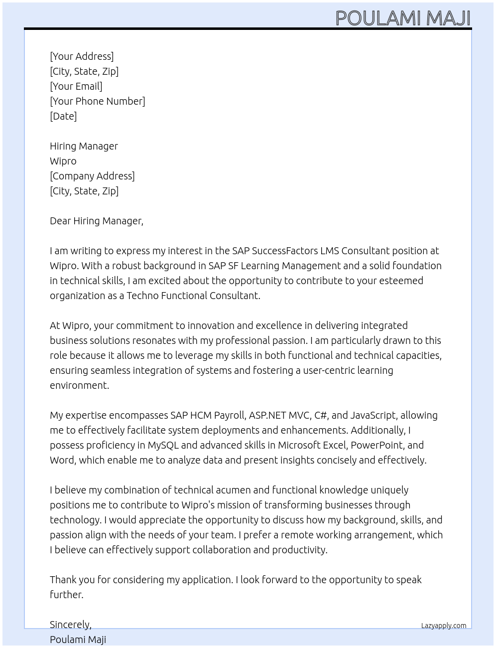 SAP Successfactors LMS Consultant Cover Letter At Wipro