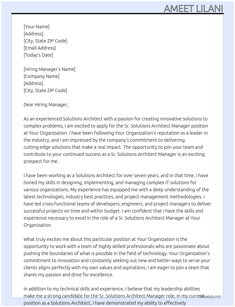 Sr. Solutions Architect Manager Cover Letter At Your Organization