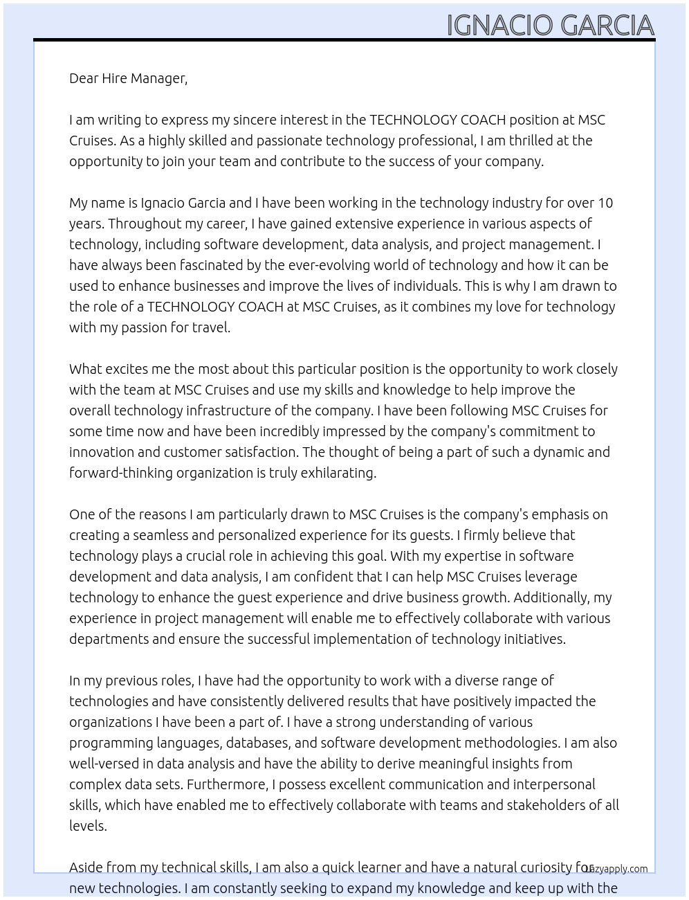 Check out these technology coach cover letter sample and examples previously used by job seekers to land on job interviews as technology coach. Use our AI cover letter generator to create a personalized cover letter as technology coach.