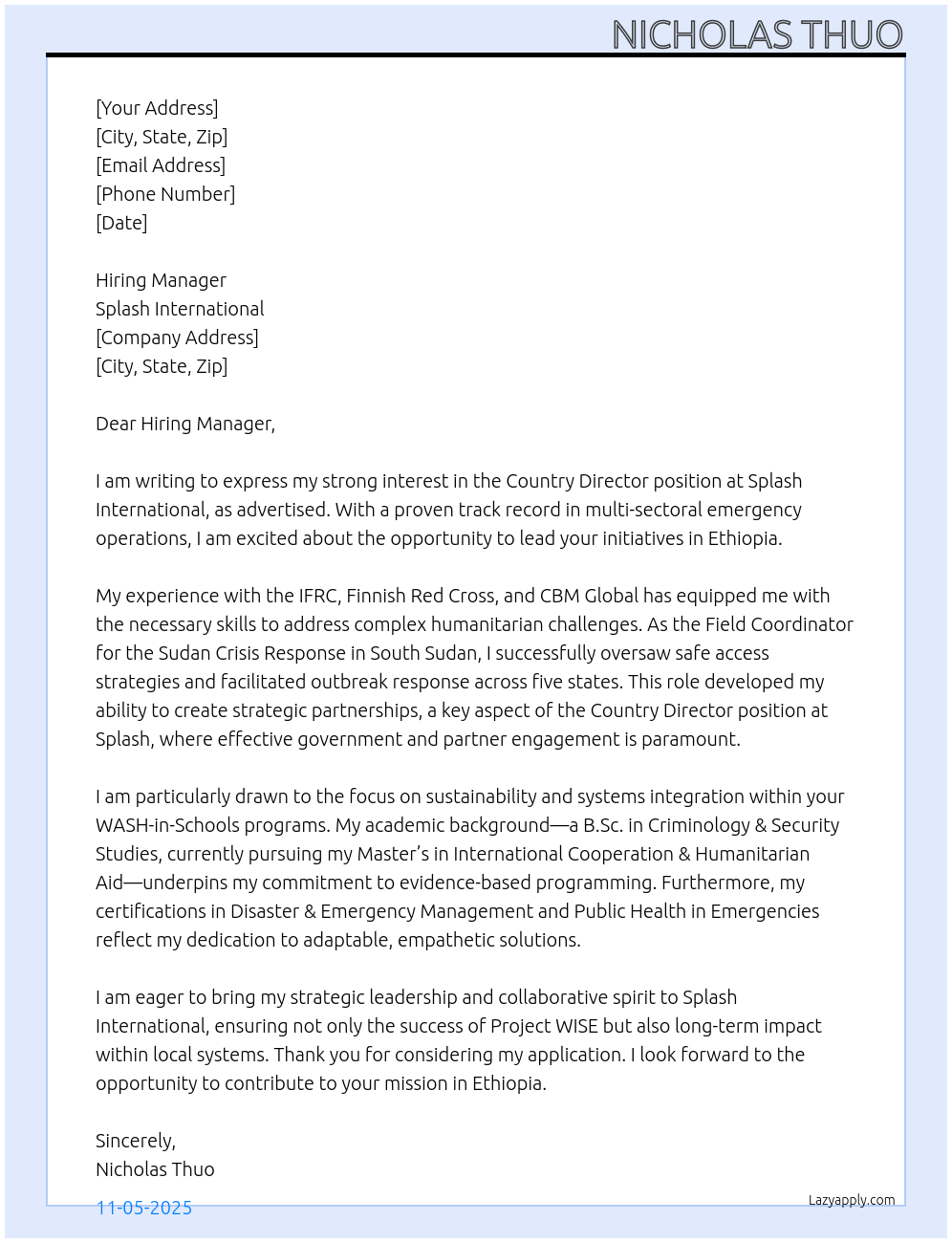 including building relationships with key humanitarian and development decision-makers and partners in-country. • Delivering programmes and advocacy in line with the country strategy