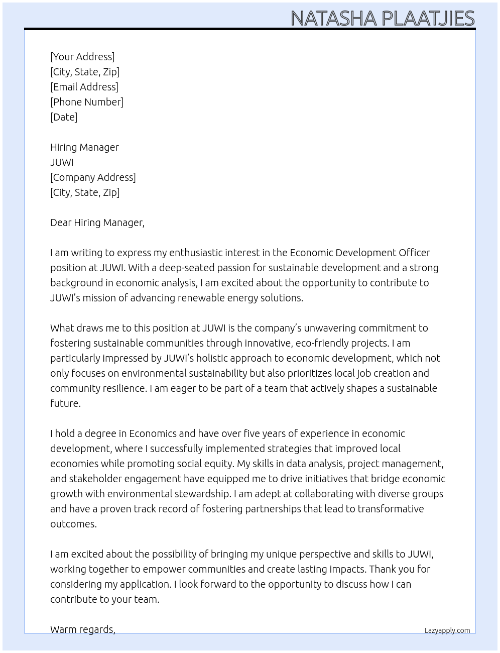 Economic Development Officer Cover Letter Examples