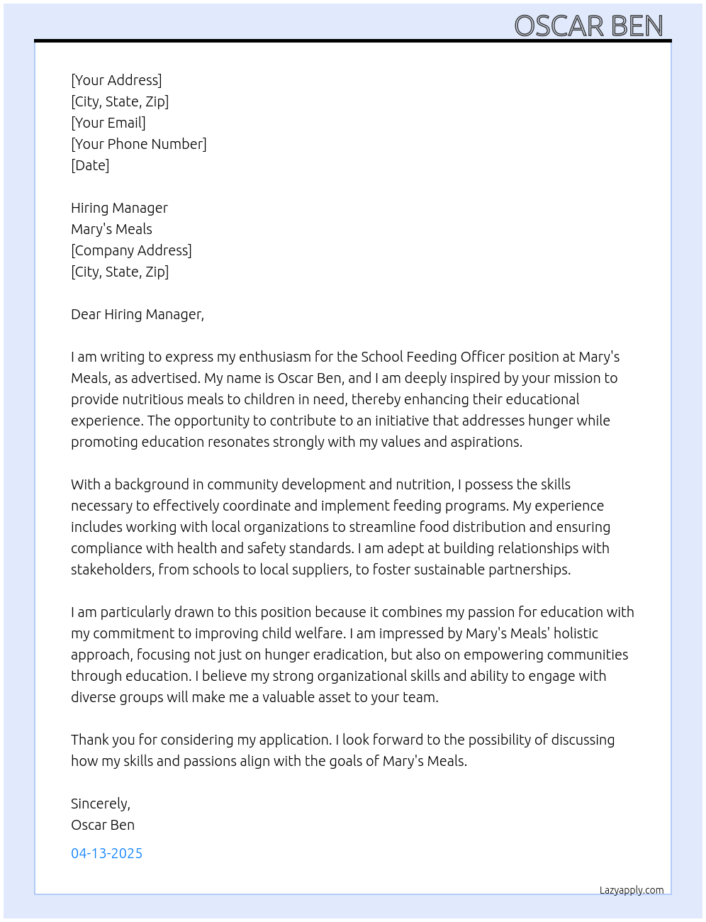 School Feeding Officer Cover Letter At Marys Meals Malawi
