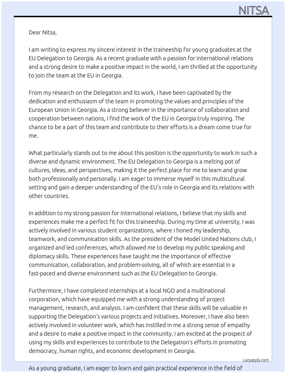 Traineeship For Young Graduates At The Eu Delegation To Georgia Cover Letter Examples And Template