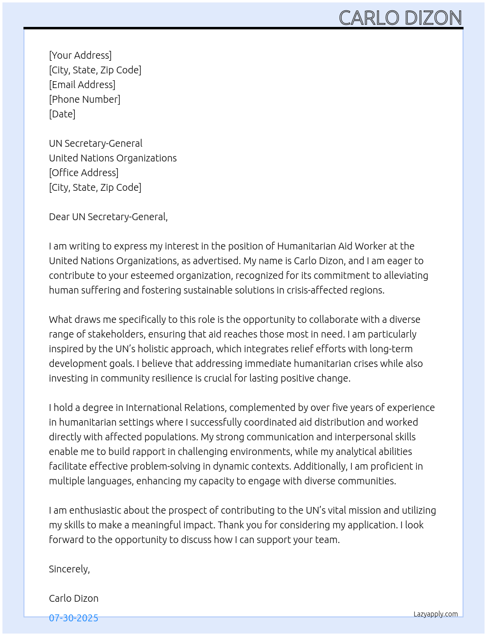 Cover letter for humanitarian aid worker - LazyApply