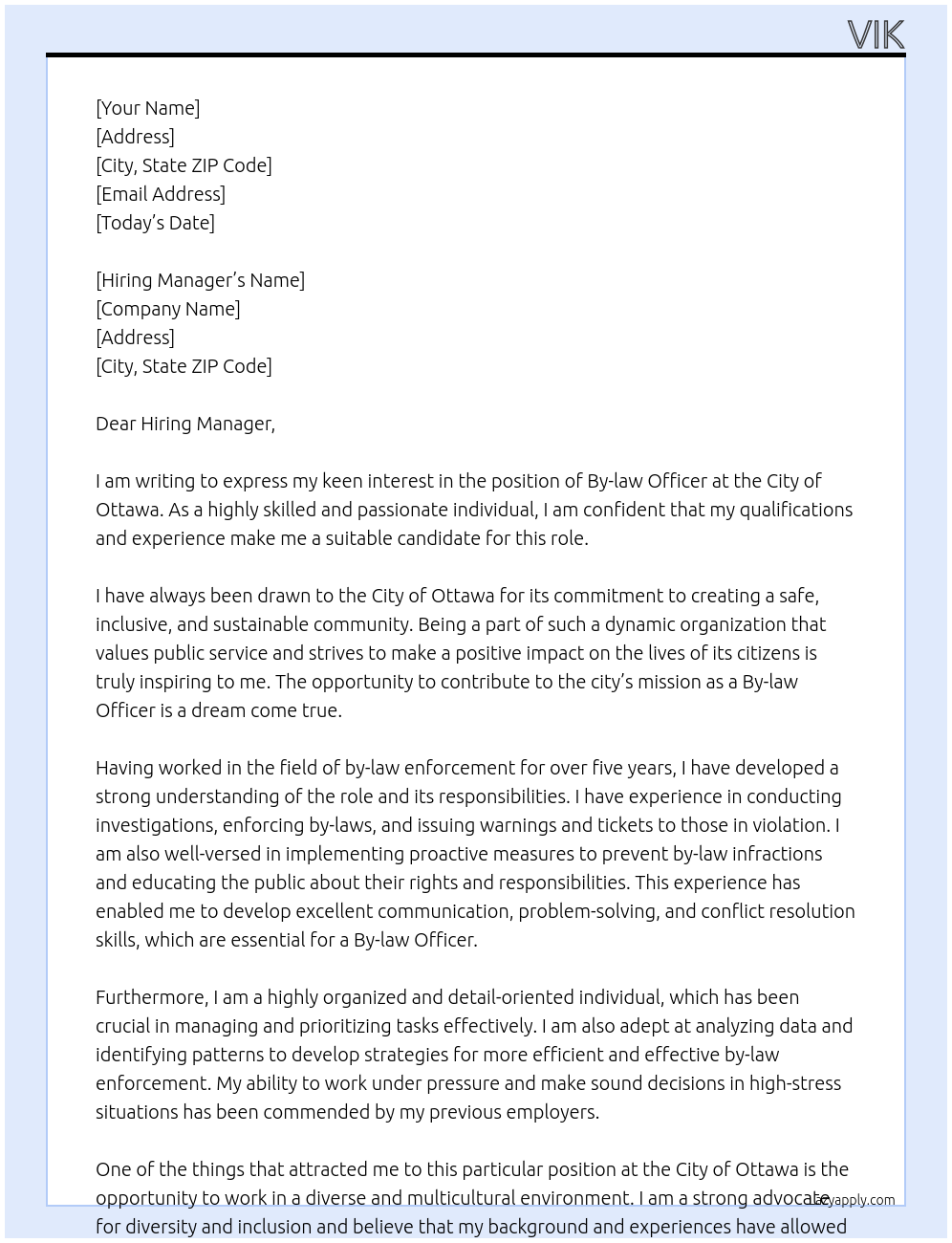 by law officer Cover Letter At city of ottawa
