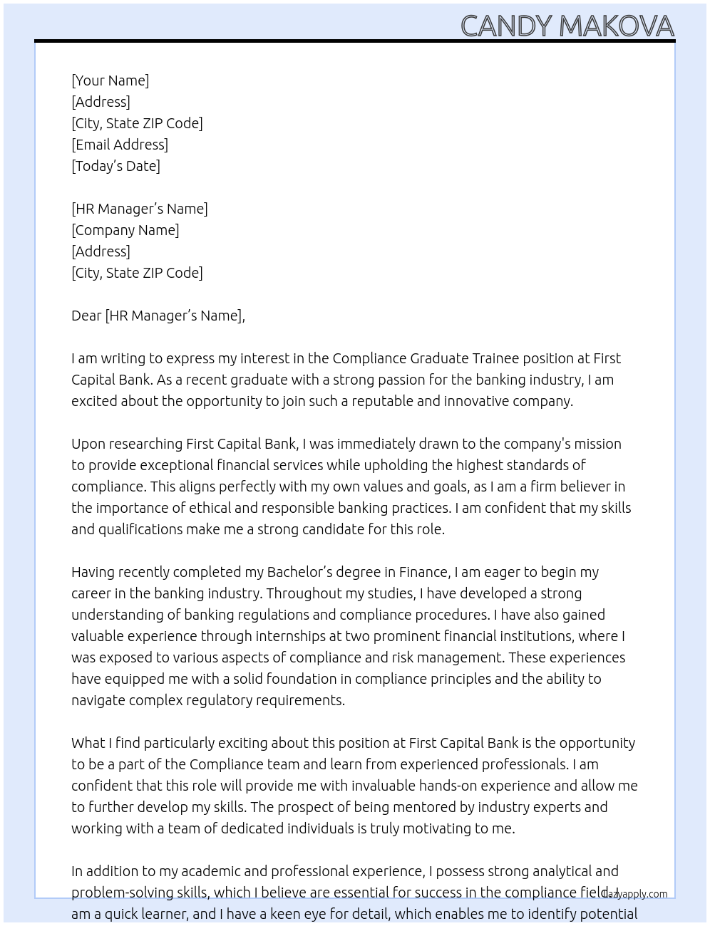 Compliance Graduate Trainee Cover Letter Examples