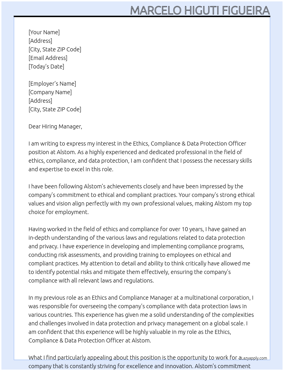 Ethics, Compliance & Data Protection Officer Cover Letter At Alstom