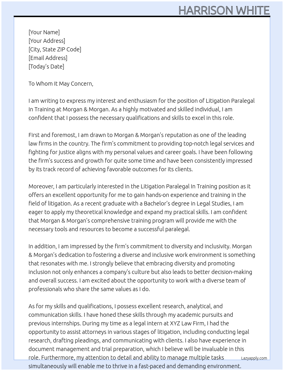 Litigation Paralegal In Training Cover Letter At Morgan & Morgan