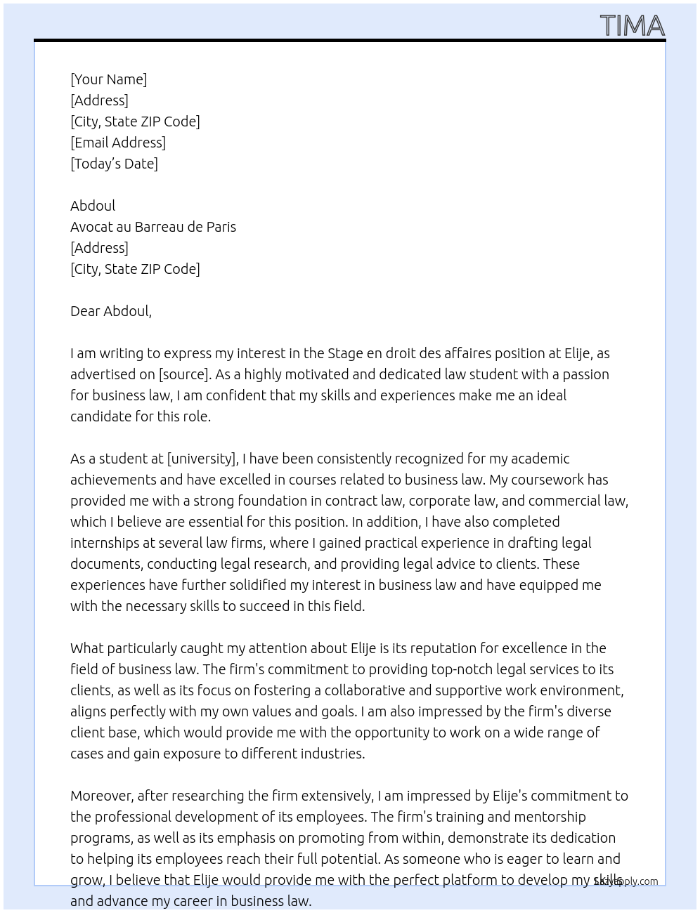 Stage En Droit Des Affaires Cover Letter Examples And Template