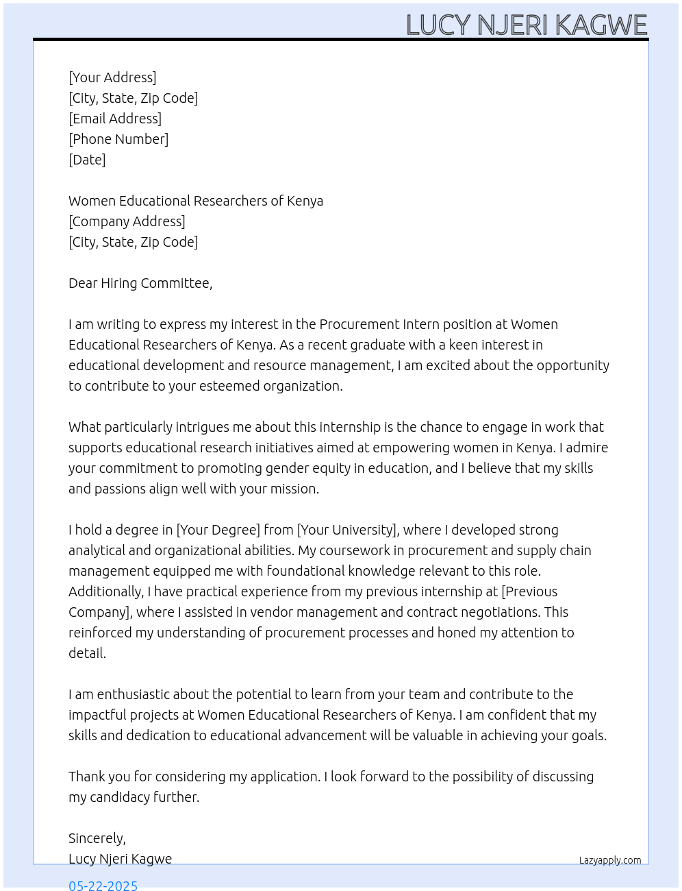 Procurement Intern Cover Letter At Lucy Njeri Kagwe