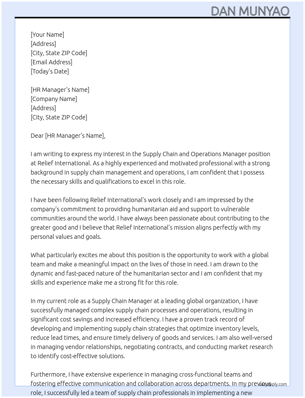 Supply Chain and Operations Manager Cover Letter At Relief International