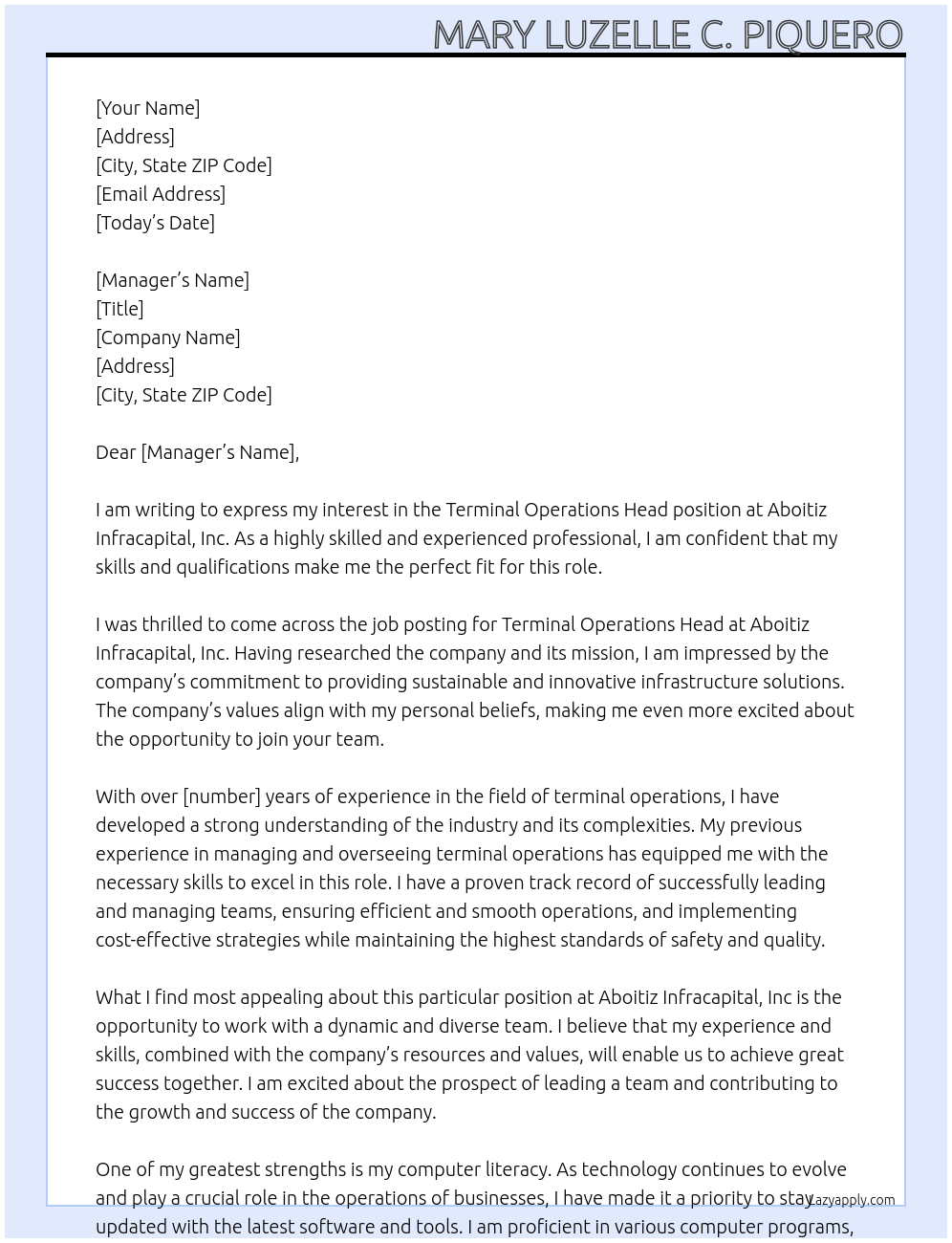Terminal Operations Head Cover Letter At Aboitiz Infracapital, Inc