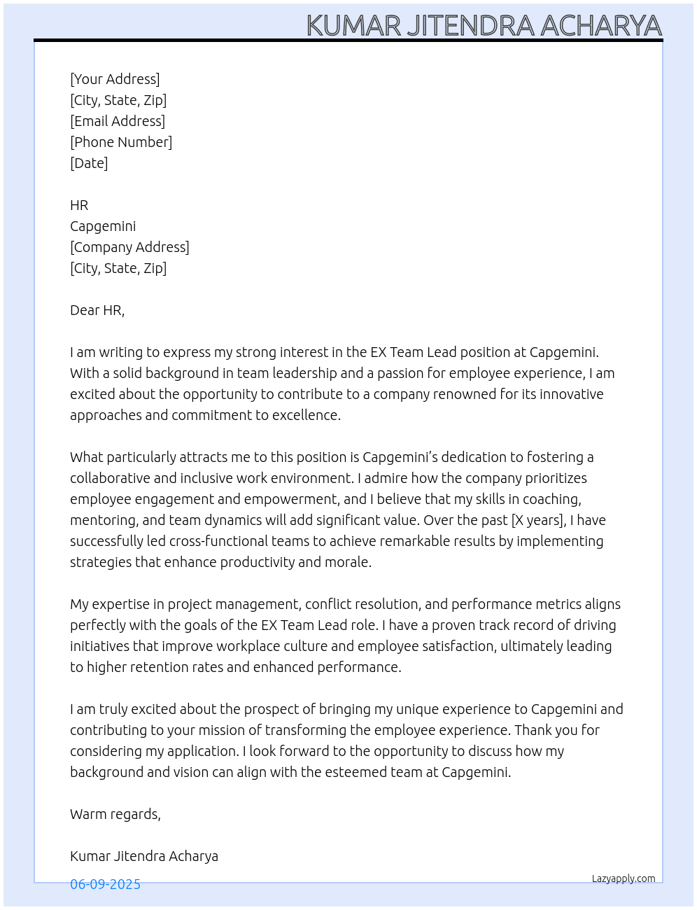 EX Team Lead Cover Letter At Capgemini