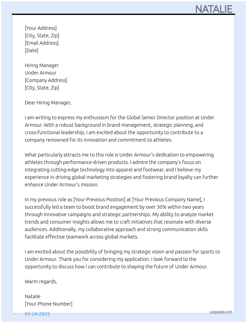 Global Senior Director Cover Letter At Under Armour