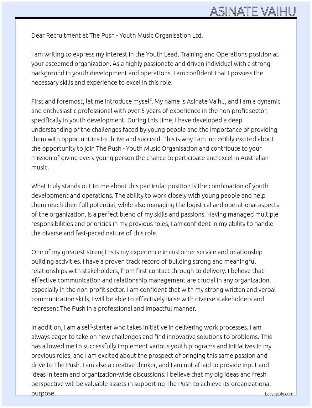 with the ability to liaise with diverse stakeholders. Self-starter who takes initiative when delivering work processes. Creative thinker with confidence to provide input into team and organisation-wide discussions. Big ideas to support The Push to achieve our organisational purpose of giving every young person the opportunity to participate and thrive in Australian music.