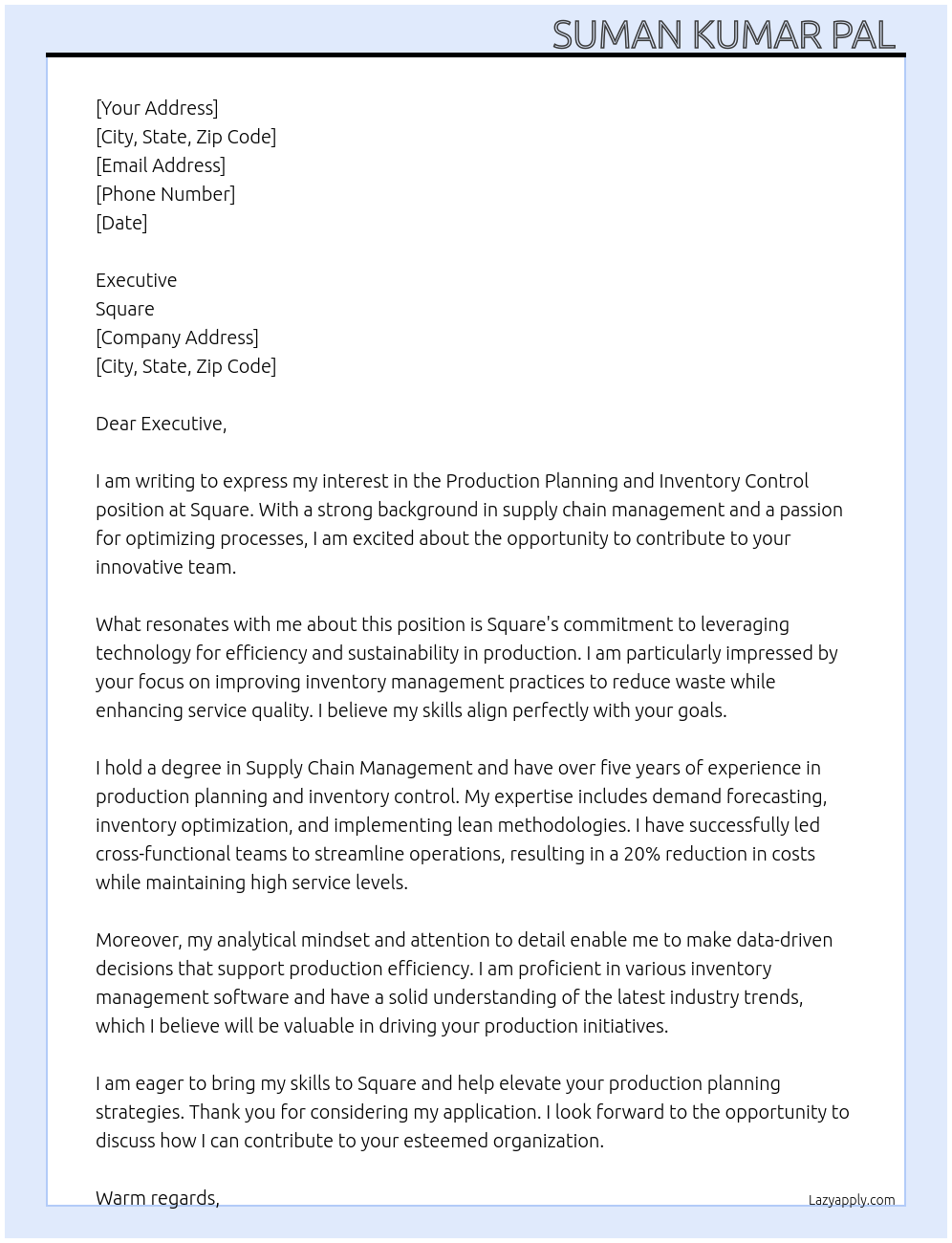 Production Planning And Inventory Control Cover Letter Examples And Template