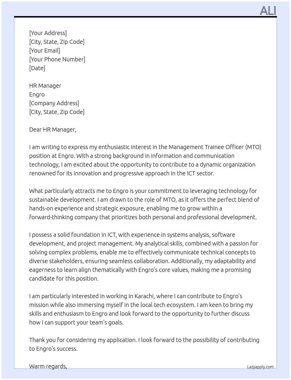 Check out these mto cover letter sample and examples previously used by job seekers to land on job interviews as mto. Use our AI cover letter generator to create a personalized cover letter as mto.