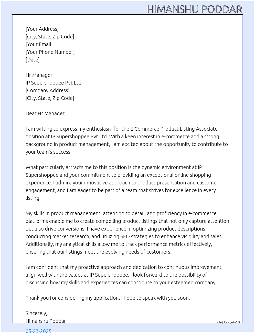 E COMMERCE PRODUCT LISTING ASSOCIATE Cover Letter At IP SUPERSHOPPEE PVT LTD