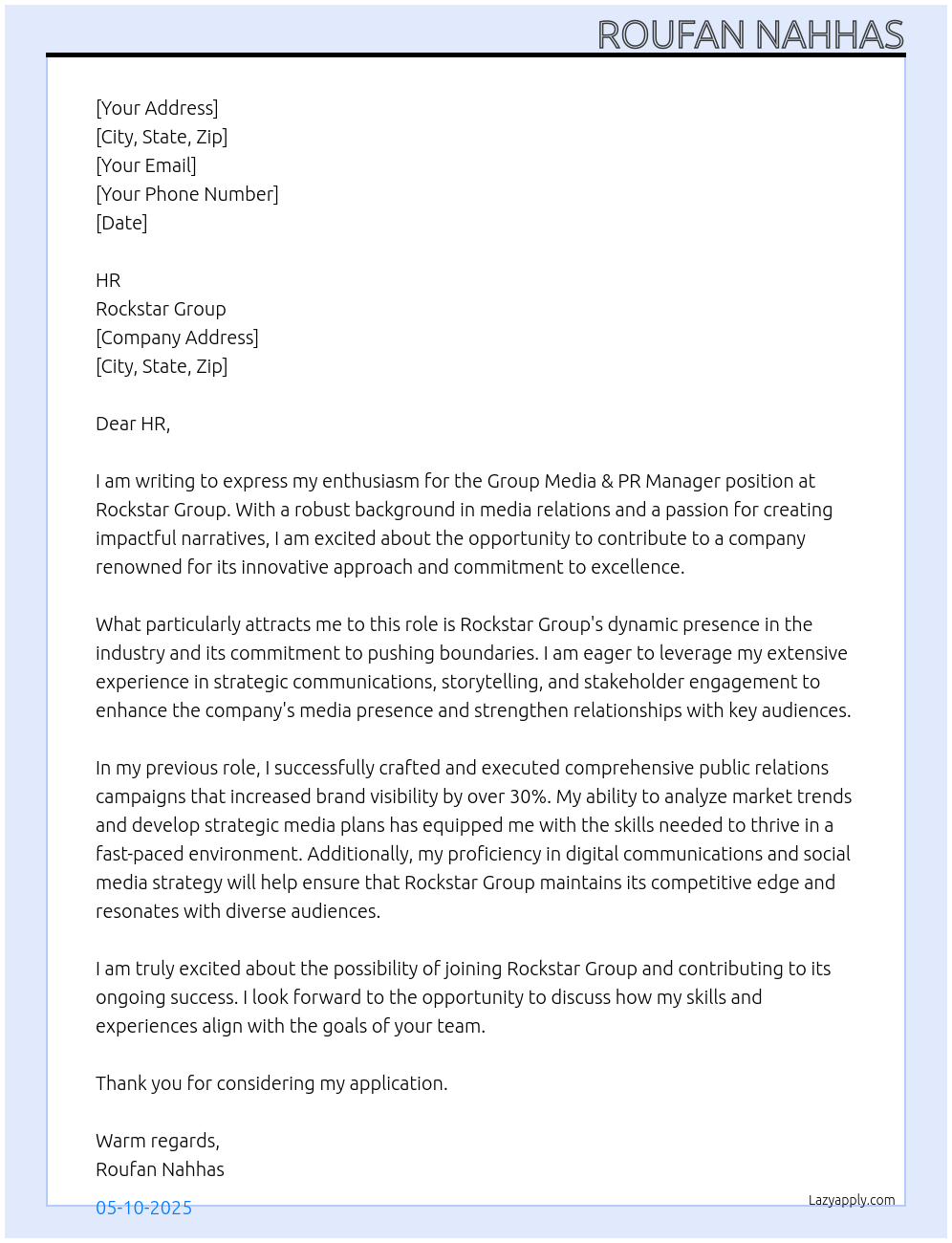 Group Media & PR Manager Cover Letter At Rockstar Group