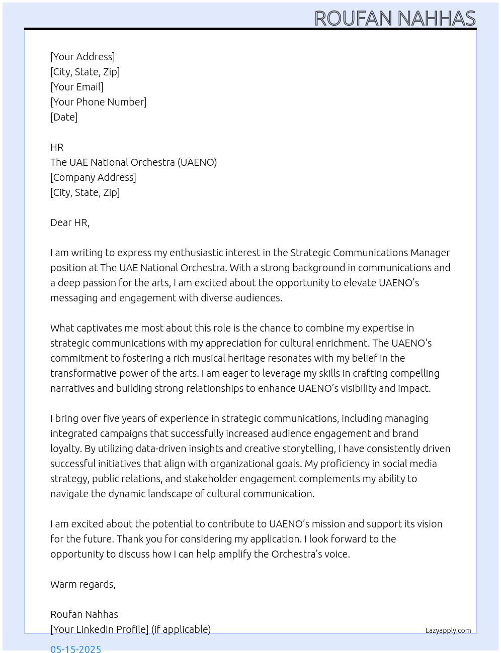 Strategic Communications Manager Cover Letter At The UAE National Orchestra (UAENO)