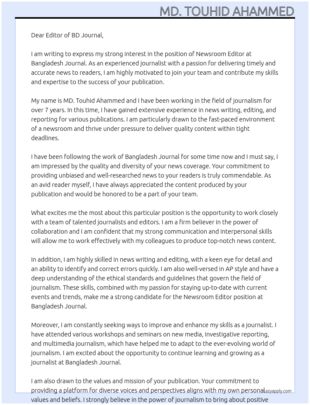 Newsroom Editor Cover Letter At Bangladesh Journal