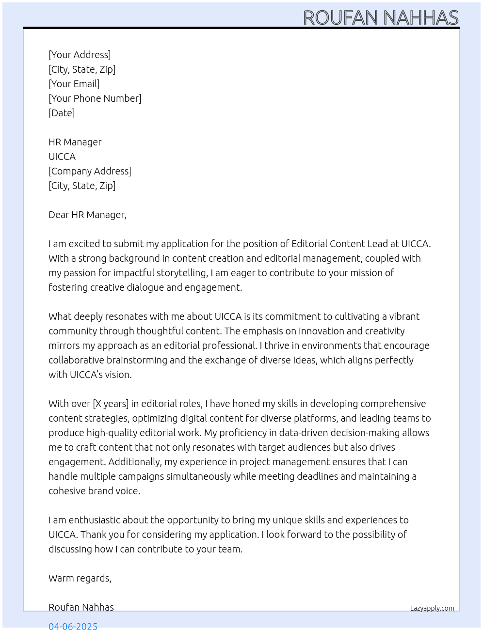 Check out these editorial content lead cover letter sample and examples previously used by job seekers to land on job interviews as editorial content lead. Use our AI cover letter generator to create a personalized cover letter as editorial content lead.