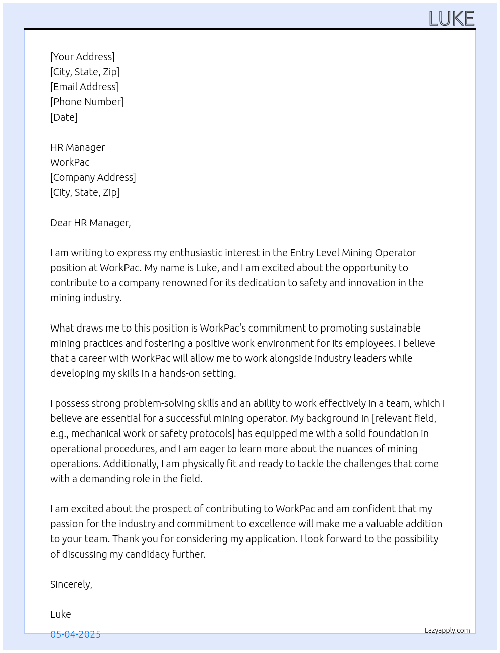 Check out these entry level mining operator cover letter sample and examples previously used by job seekers to land on job interviews as entry level mining operator. Use our AI cover letter generator to create a personalized cover letter as entry level mining operator.