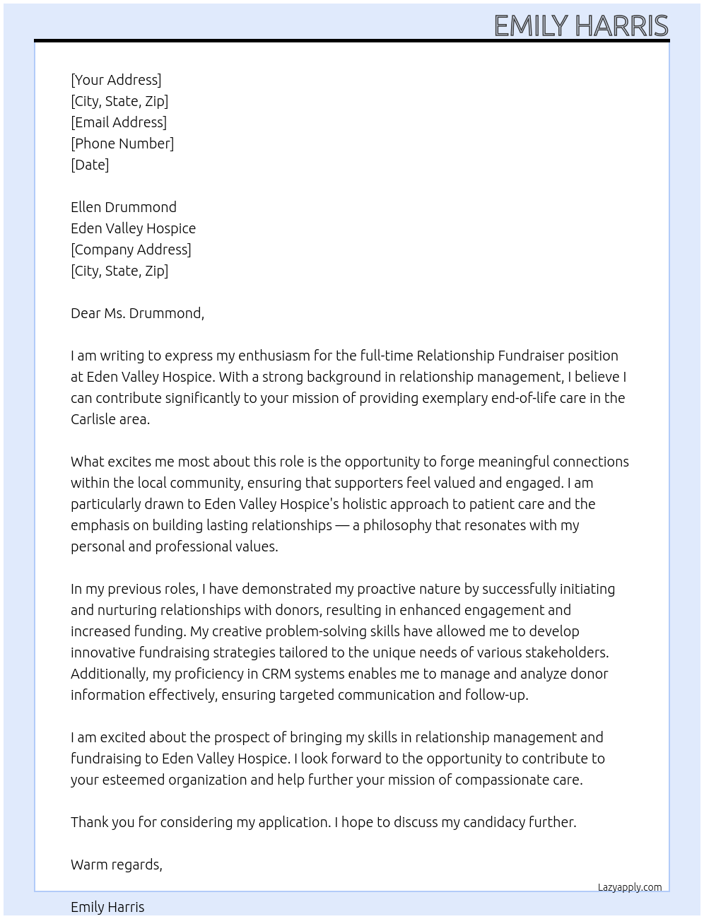 Relationship Fundraiser Cover Letter At Eden Valley Hospice
