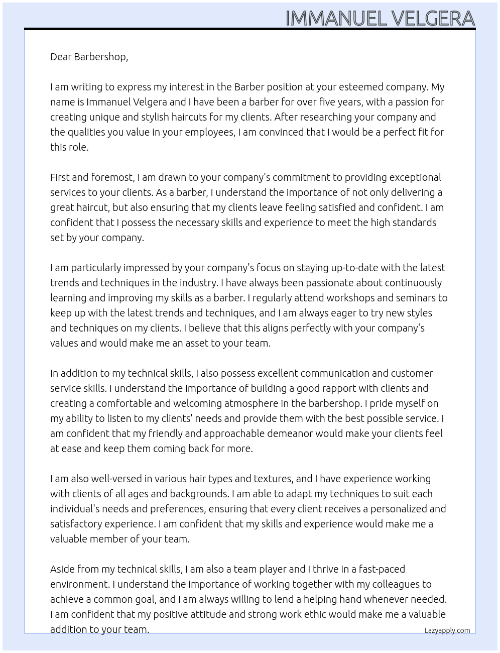 Apprentice barbery