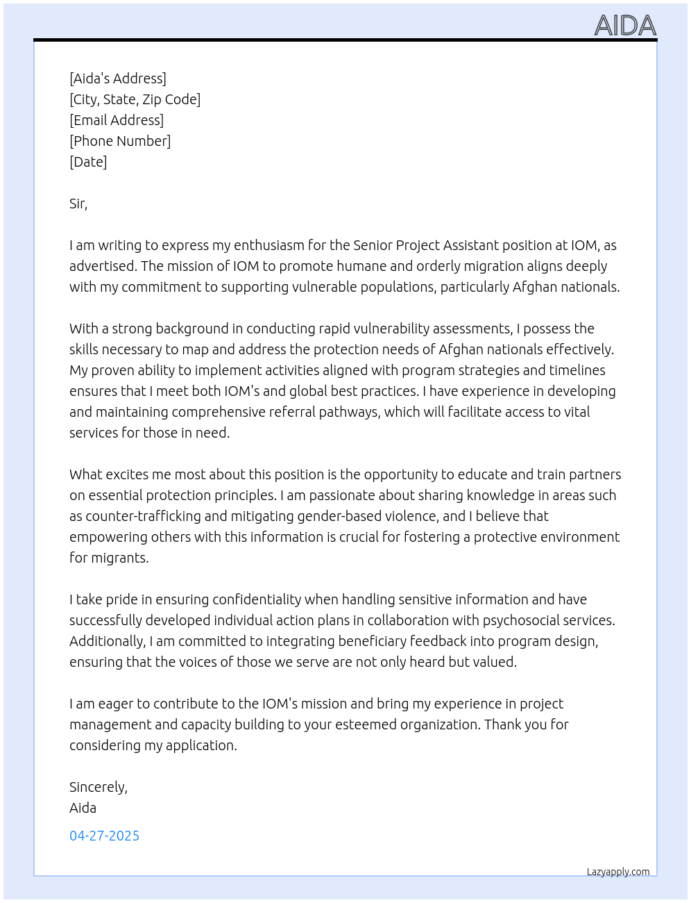 develop individual action plans for Afghan nationals. 8. Work with IOM colleagues to ensure that all activities safeguard the IOM protection principles and ensure the mainstreaming of key protection concerns into all IOM activities. 9. Deliver trainings to relevant partners