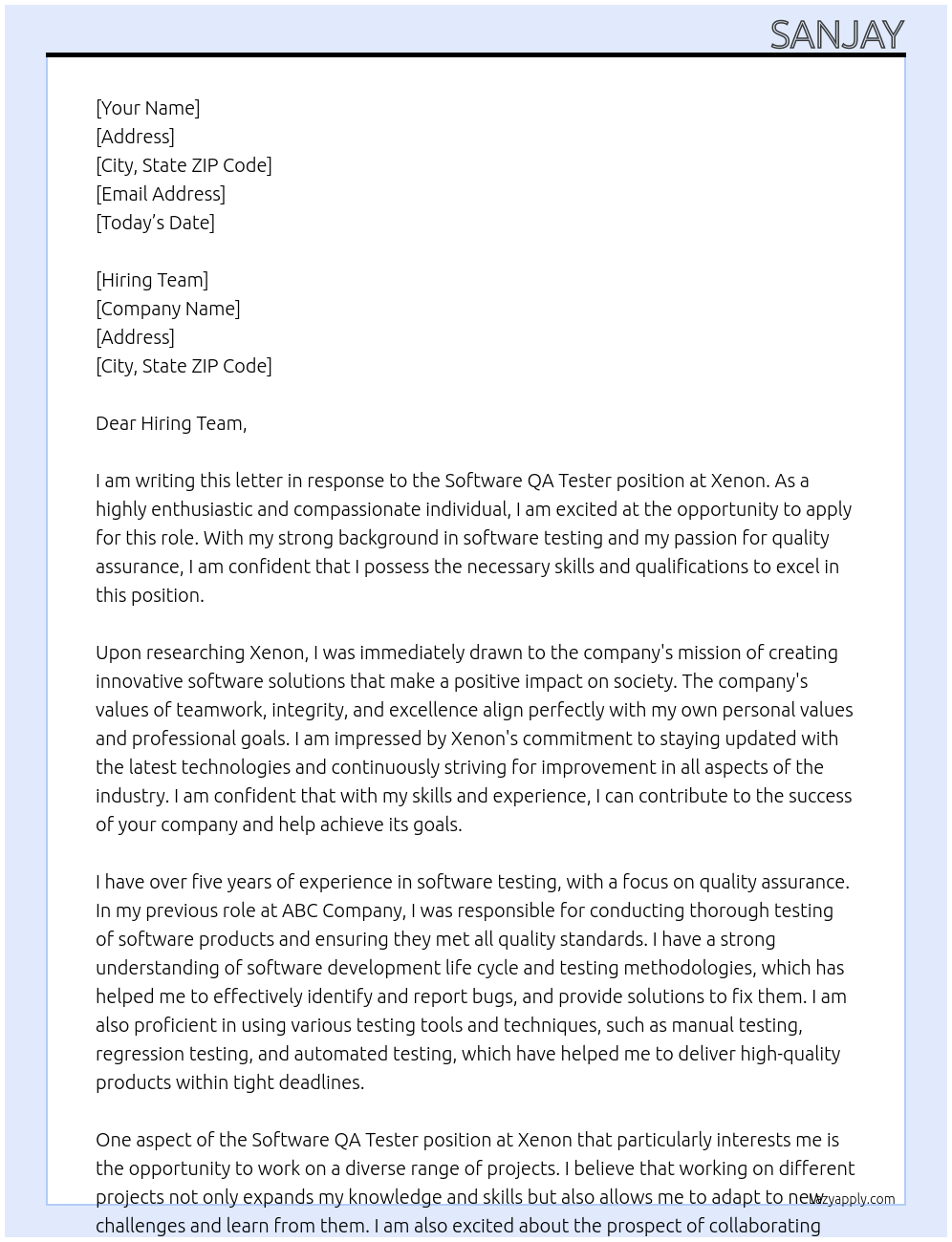 Software QA Tester Cover Letter At Xenon