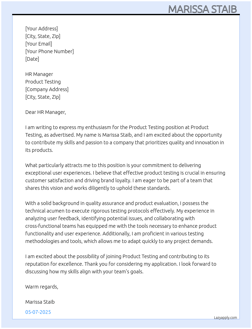 Product Testing Cover Letter Examples And Template