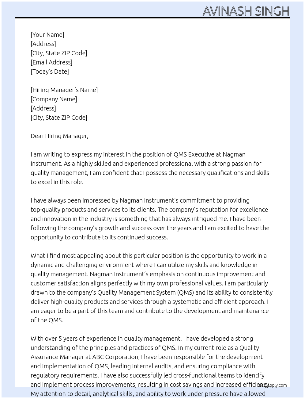 Qms Executive Cover Letter