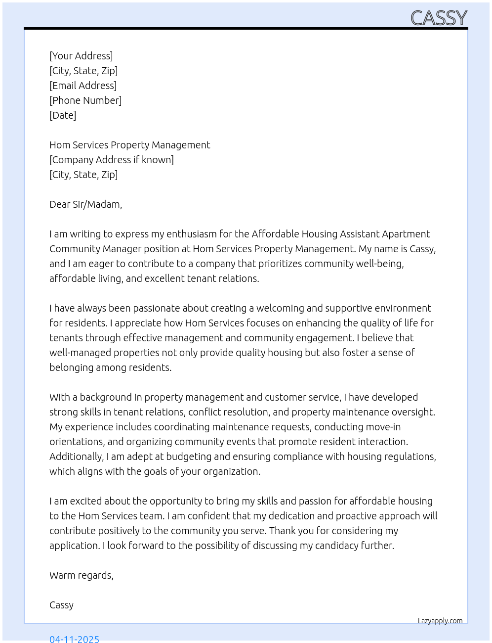 PropertyManager Cover Letter At Hom Services Property Management