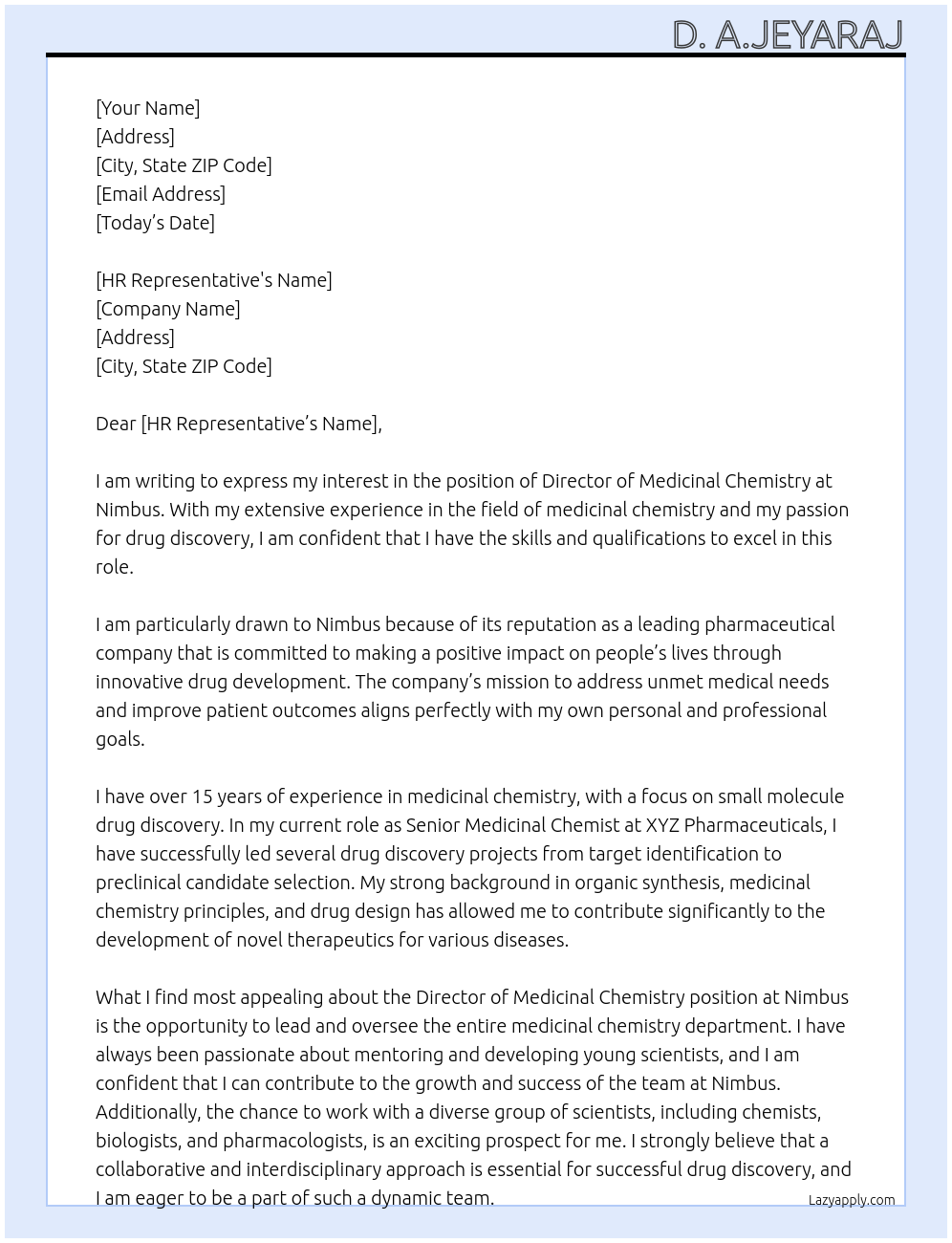 director, medicinal chemistry Cover Letter At Nimbus