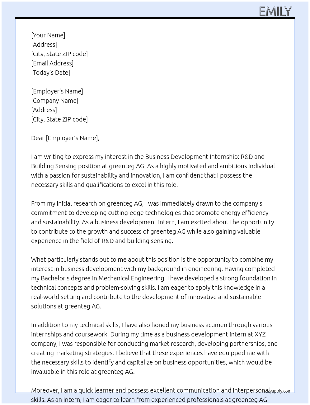 Business Development Internship: R&d And Building Sensing Cover Letter Examples And Template