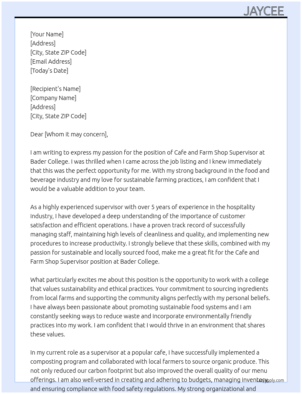 Cafe And Farm Shop Supervisor Cover Letter Examples And Template
