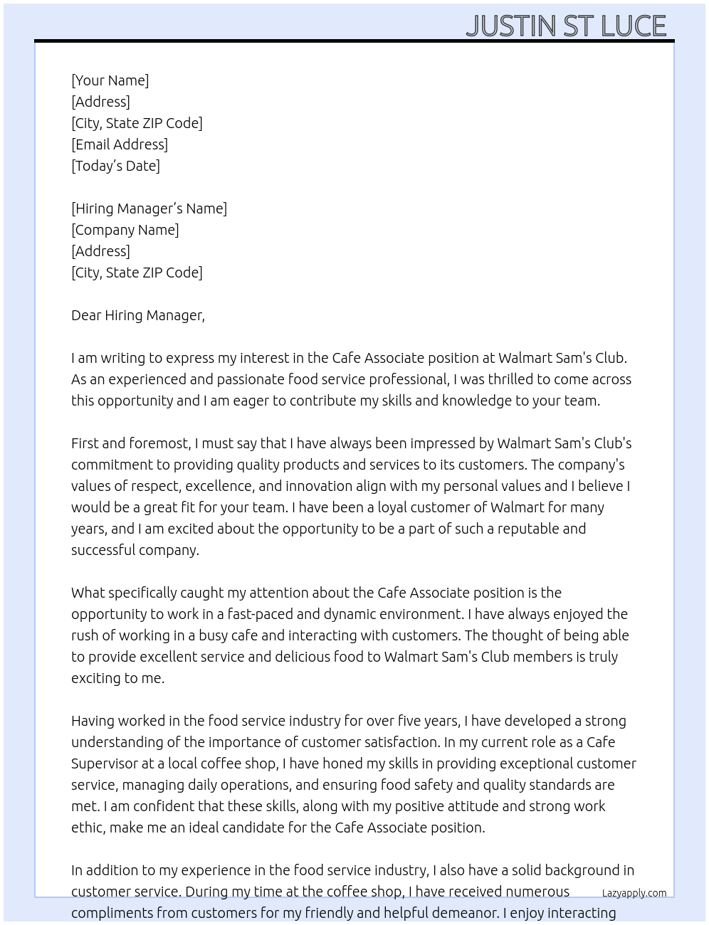 Check out these cafe associate cover letter sample and examples previously used by job seekers to land on job interviews as cafe associate. Use our AI cover letter generator to create a personalized cover letter as cafe associate.