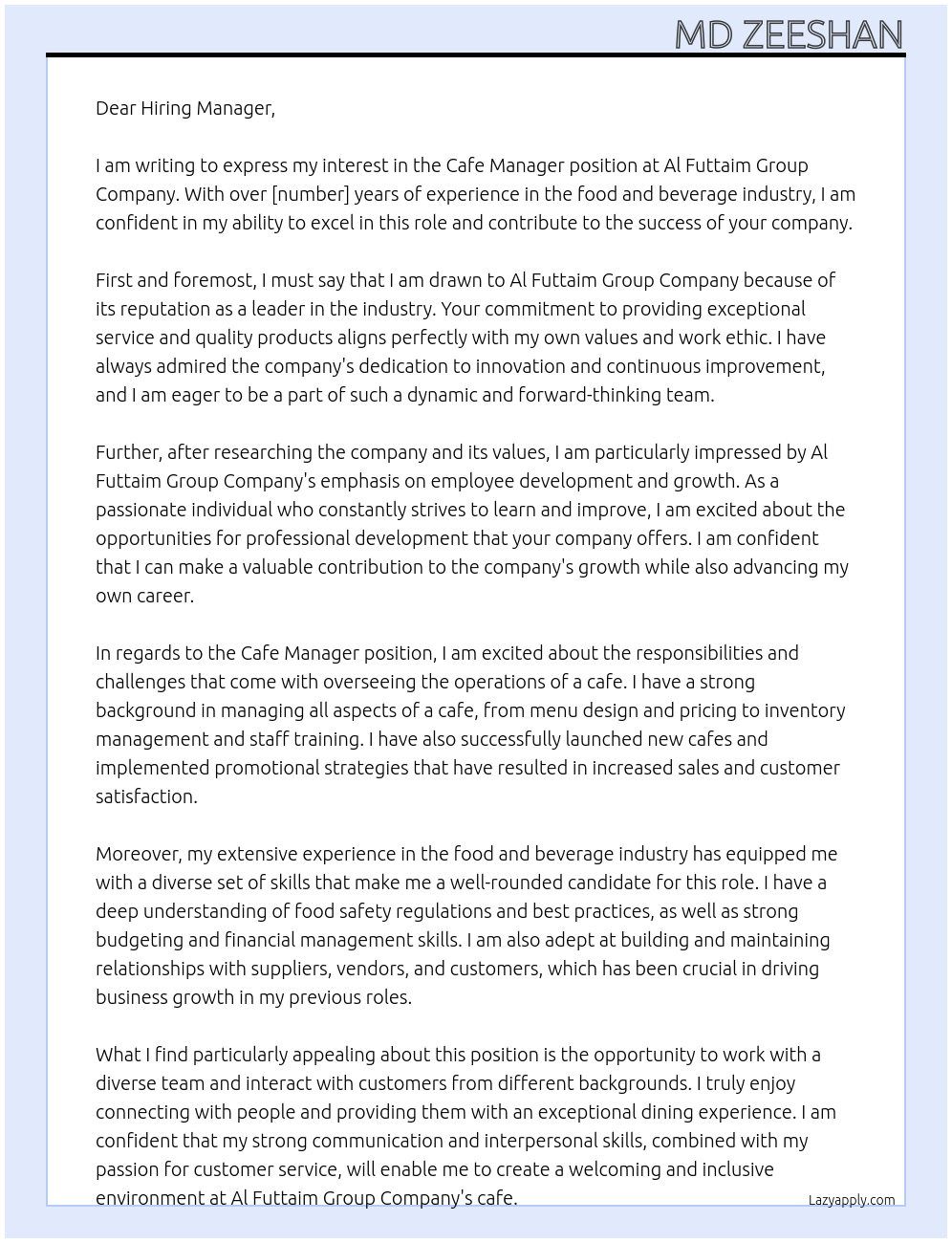 Cafe Manager Cover Letter At Al futtaim Group Company