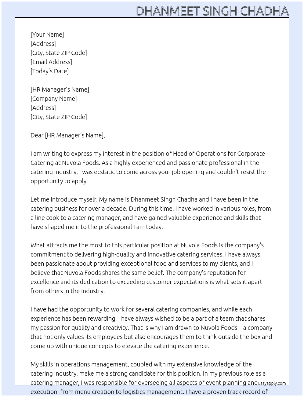Head Of Operations Corporate Catering Cover Letter Examples And Template
