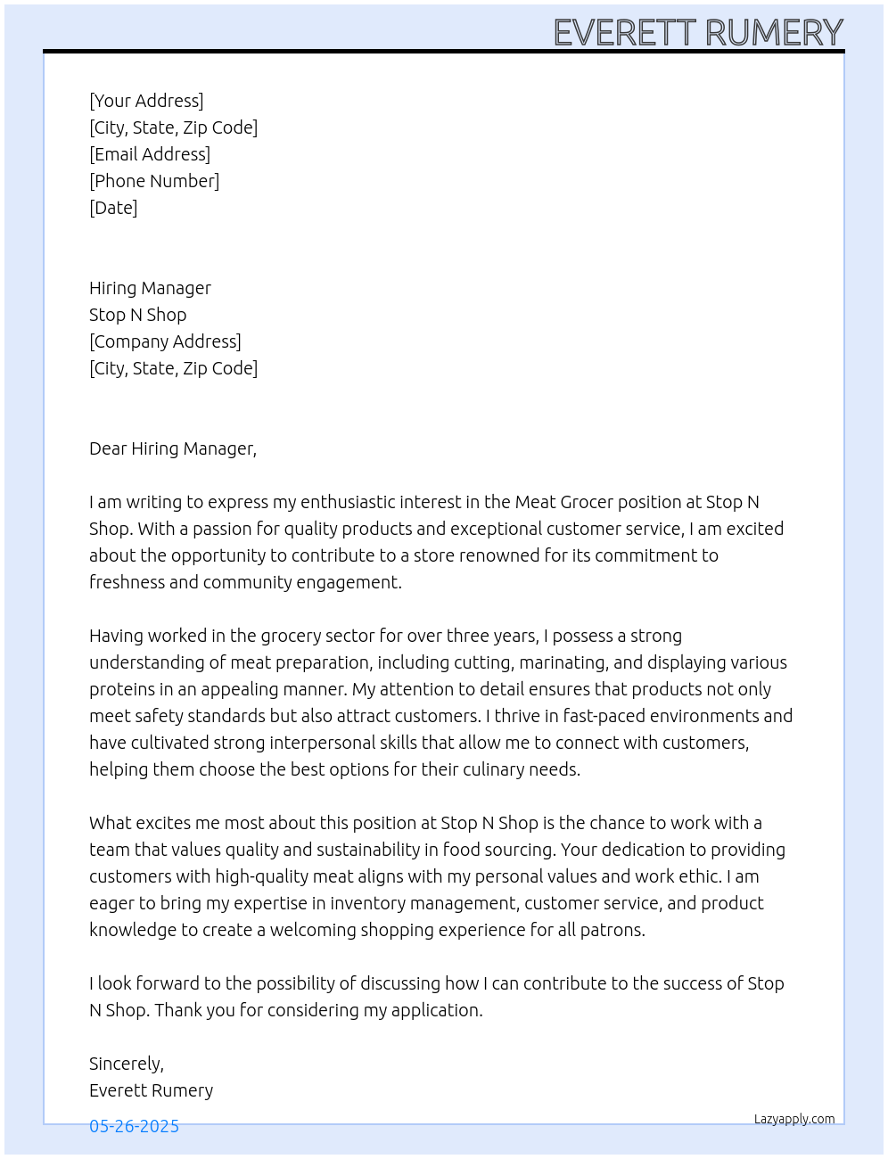 Meat Grocer Cover Letter