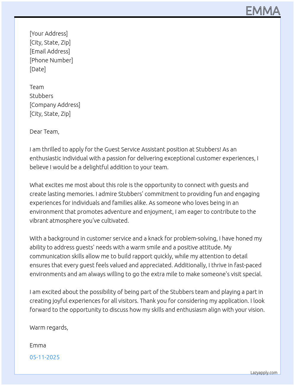 Cover letter for guest service assistant - LazyApply